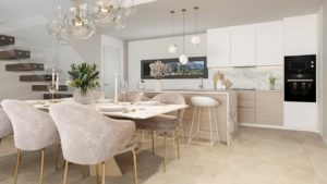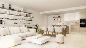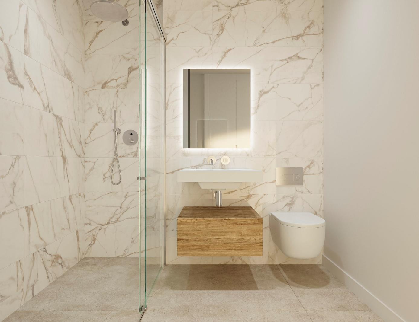 Każda sypialnia posiada własną łazienkę en-suite, a dodatkowo w każdym mieszkaniu znajduje się łazienka gościnna. Kuchnie wyposażone są w designerskie meble i energooszczędne sprzęty najwyższej klasy. Mieszkania o powierzchni od 160 do 230 metrów kwadratowych zapewniają przestrzeń i komfort dla całych rodzin. Każde piętro mieści zaledwie dwa apartamenty, co tworzy kameralną atmosferę i gwarantuje prywatność.
